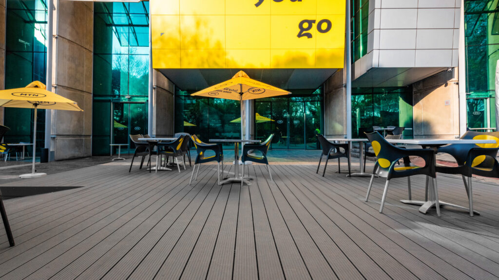 ““The Eva-tech decking looks as good as the day it was installed and answered all our specifications in terms of sustainability and low-maintenance. Not only does it look the part, but it was quick to install with minimal disruption to our business,” says Johannes Setloboko, Facilities Specialist at MTN Head Office.”