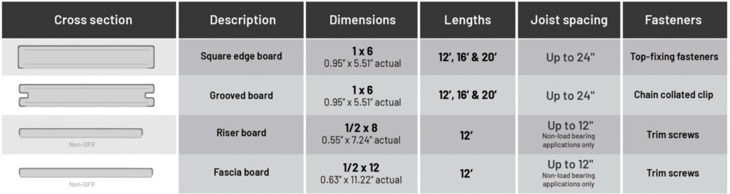 Specialized glass fiber-reinforcement improves span capability & reduces material expansion & contraction. Standard 6” wide boards are simple to install & span up to 24” OC. Their natural looking splinter-free & slip resistant surface makes shoes & sandals optional. It’s time to trade in the hassles of standard wood docks & piers for a place to unwind with weather resistant Eclipse composite decking.