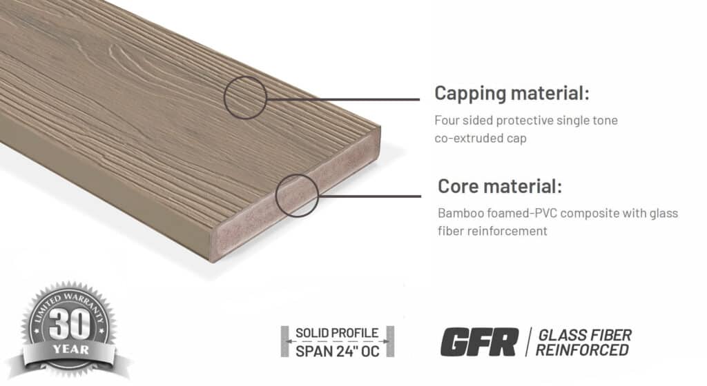 FULLY CAPPED, REINFORCED, BAMBOO-PVC COMPOSITE